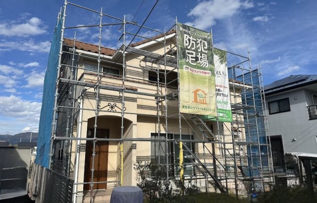 塗装前の養生作業と外壁塗装 上塗り工程をレポートします!|山梨県笛吹市