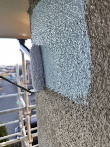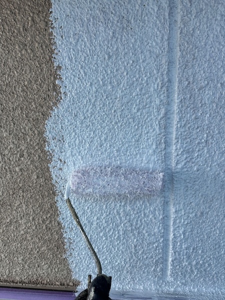 上塗りの密着性を高めるために外壁を下塗りしました|山梨県甲斐市
