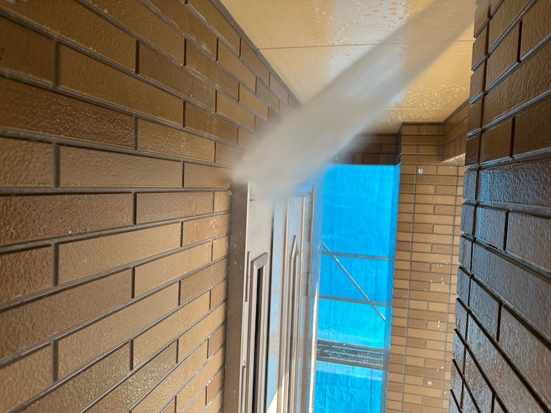 高圧洗浄はただ建物をきれいにするだけでなく、塗装する面を良好な状態にして塗装が剥がれにくい下地にします。